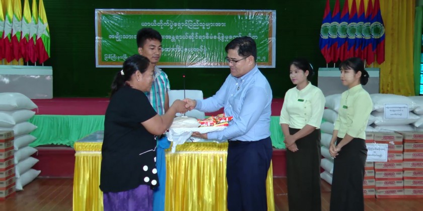 Then, the Chief minister, Chief Justice of the State High Court and State Ministers handed 215 rice bags provided by the National Disaster Management Committee and 215 boxes of instant noodle worth 19.565 million Kyats for 215 temporary displaced households constituted 850 individuals.