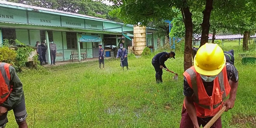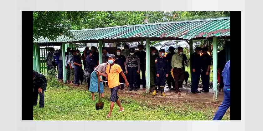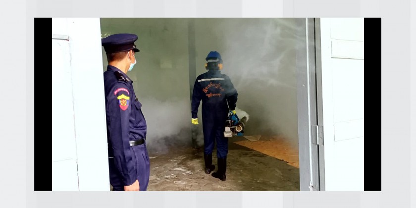 Under the supervision of the Chairman of Township Administration U Than Win, through the collaborative efforts among the township level departmental officials, police members, general administration department staff, township development staff, municipal employees, members of Fire Service Department and Red Cross Society and ward administrators conducted the collective cleaning activities such as abate adding into water storage barrels and tanks in the school compound, spraying mosquito repellent, cleaning trashes, bushes, and tree branches, clearing weeds, clearing the sites where mosquito hide, waste removing and unblocking drainages are conducted, it’s learnt.