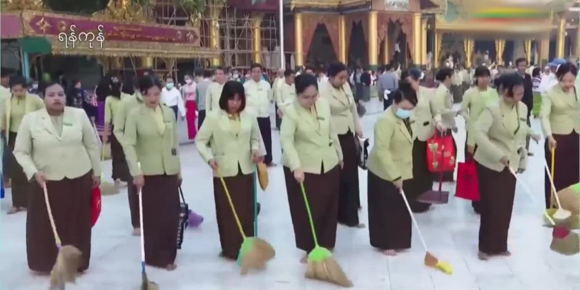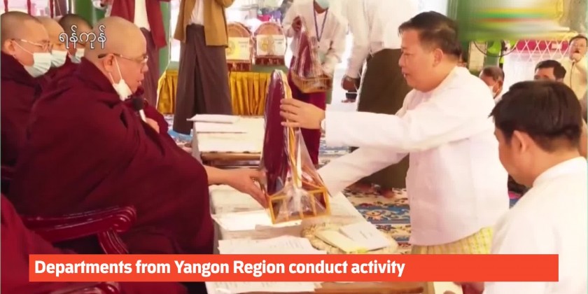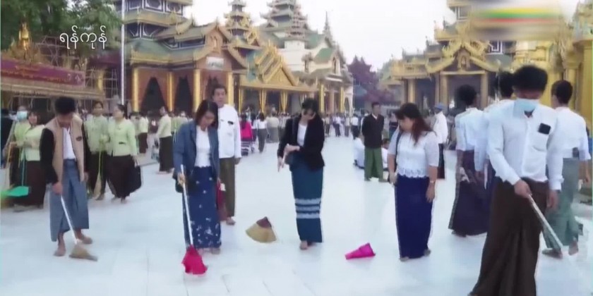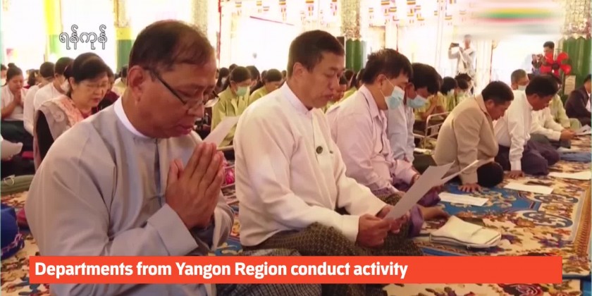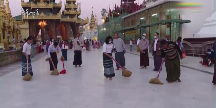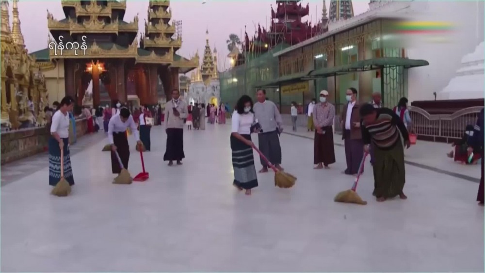 Departments from Yangon Region conducted collective sanitation activities on the precinct of Shwedagon Pagoda and members of Sanghas and Wut Associations recited religious verses at the pagoda. 1000 staffs from more than 120 departments in Yangon region participated in the activities.