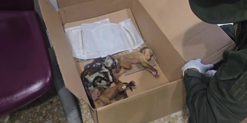 Authorities said the traffickers, both foreigners, were trying to smuggle six sedated primates, some of them endangered species, out of the country from an airport near the city of Medellin. The Patrol Commander of the environmental police also said "they were charged with illegal exploitation of natural resources and animal abuse."