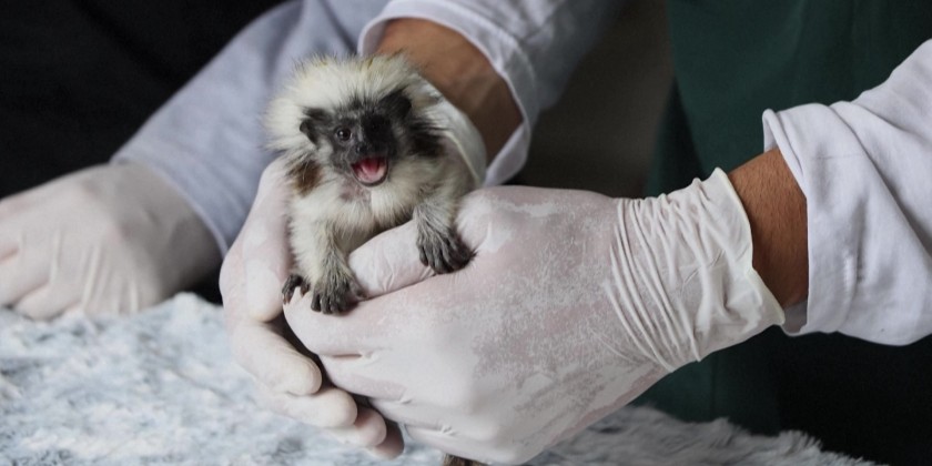 Colombia's environmental agency, show veterinarians examining primates found in the underwear of two people arrested for trafficking.
