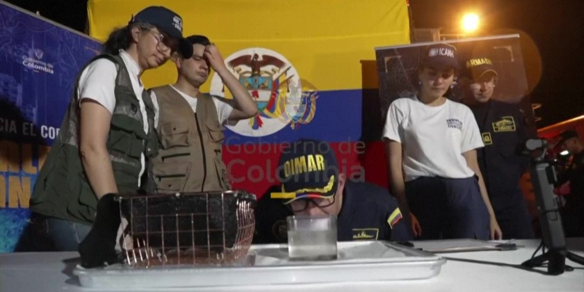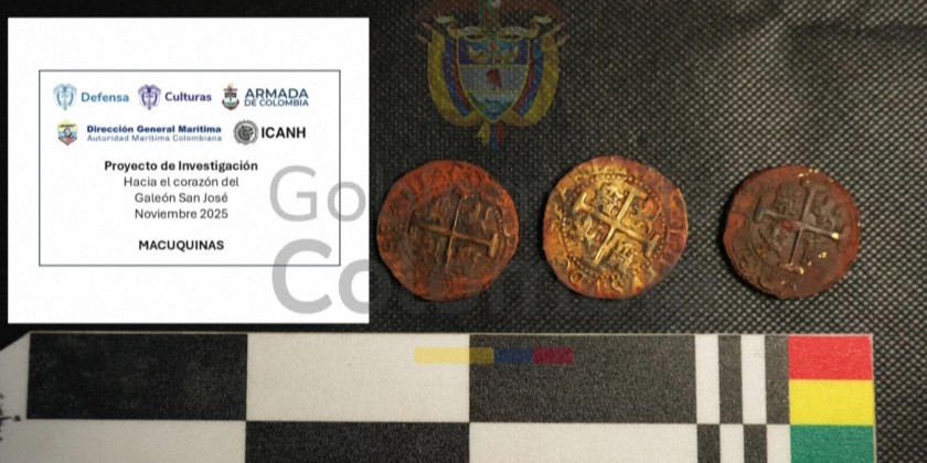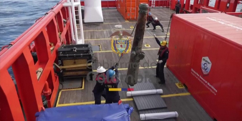 Colombian authorities on Thursday showed off the first objects to be recovered from a treasure-crammed Spanish galleon that sank off the coast 300 years ago: three gold and bronze coins, a canon and a porcelain cup. The items were the first to be brought to the surface, ten years after the wrecked San Jose was discovered in the Caribbean Sea. The San Jose was owned by the Spanish crown when it sank near Cartagena in June 1708.