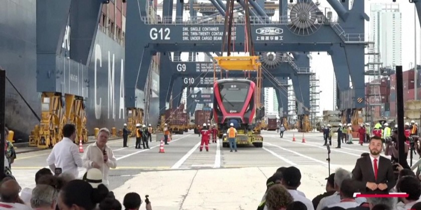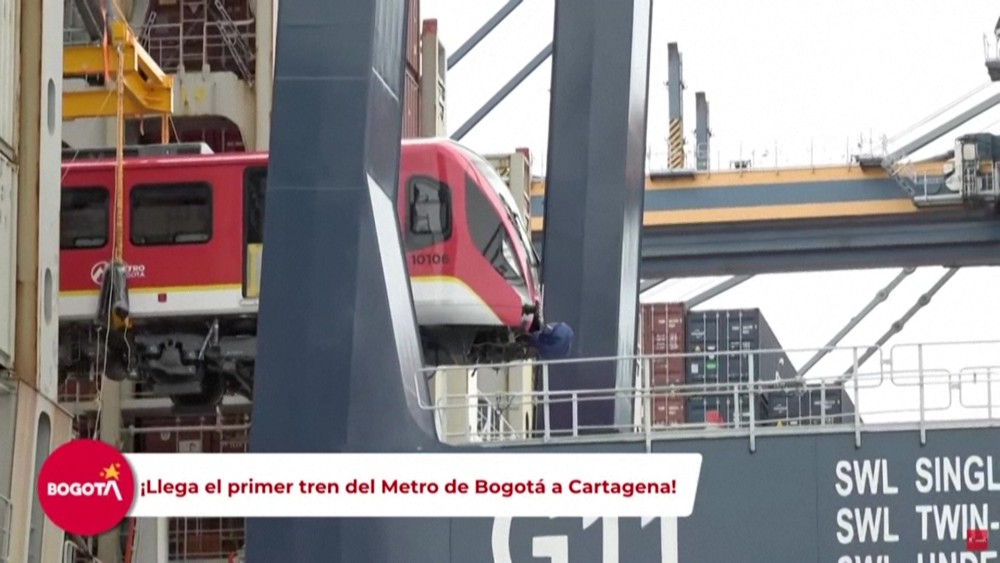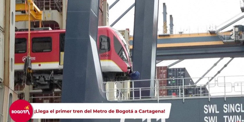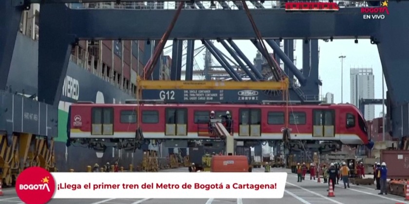 Colombia welcomed the arrival of the first Bogota metro train, a six-car convoy that is unloaded at Cartagena's harbor -- the first in a series of 30 trains.
