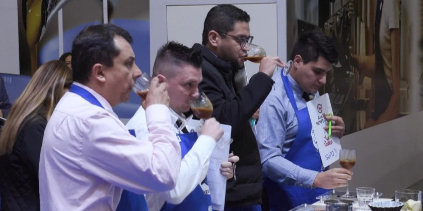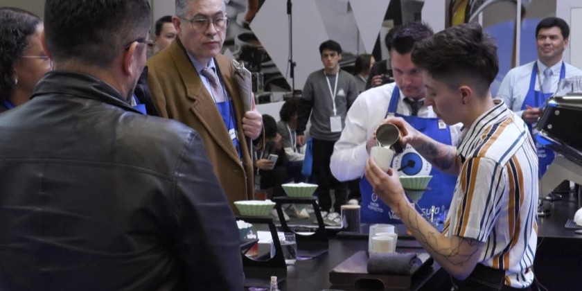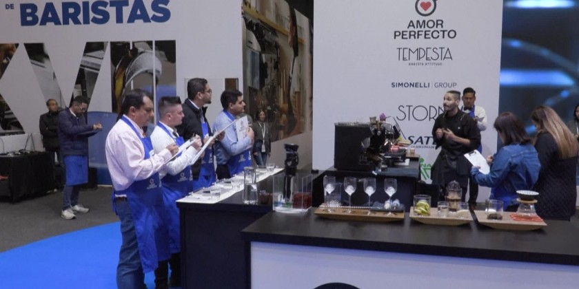 Baristas prepared and poured a cup of coffee for a jury as part of a competition during the Feria de Cafés de Colombia Expo 2024.Coffee producers from 23 Colombian departments joined the expo. The winner will represent Colombia, the world's third largest coffee producer, at the World Barista Championship (WBC).