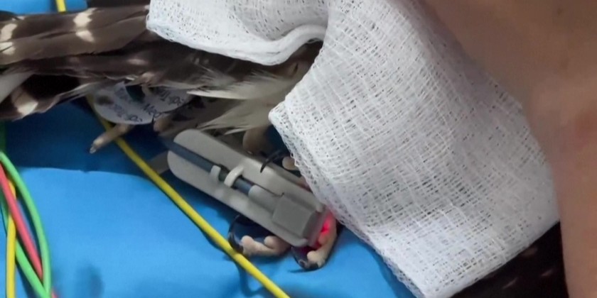 Specialists found that the bird's vision was impaired by a corneal ulcer and cataract in its right eye, affecting its ability to fly and survive in the wild. During the next few weeks, it will begin a recovery process that will end in visual recovery and subsequent release of the animal.