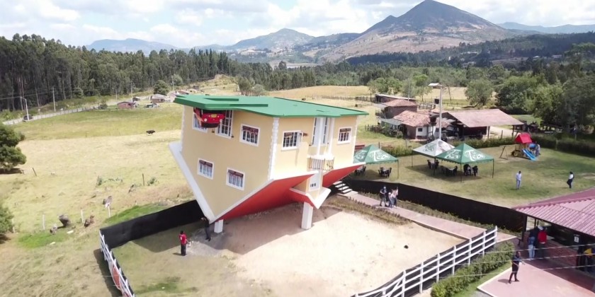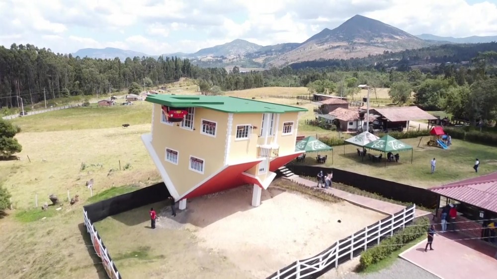 Better known as the upside-down house, it has all the furniture in the opposite direction of a typical building. The construction has an inclination of 5 degrees to the left and 5 degrees backwards, which generates an "optical" illusion in its visitors.
