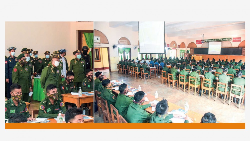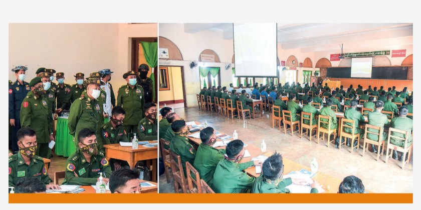 Commandants of the Defence Services (Army) Combat Forces School (Bahtoo) and the Defence Services (Army) Officers Training School (Bahtoo) reported on training sessions and implementation of the four-military building tasks. The Vice-Senior General fulfilled the needs of training and school administration.