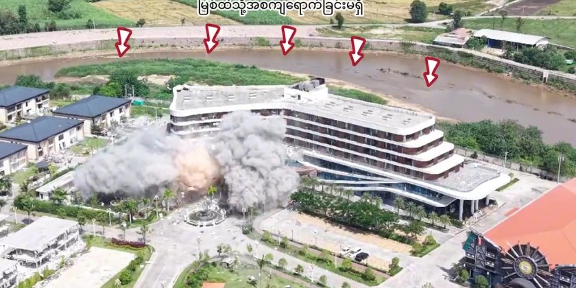 In the first area where the territorial clearance and Administration began – KK Park to prevent any chance of online gambling operations re-establishing themselves. To achieve that, 100 per cent of the buildings in that area were destroyed. Machinery was used to demolish structures, and some high-level explosive demolitions were also conducted.