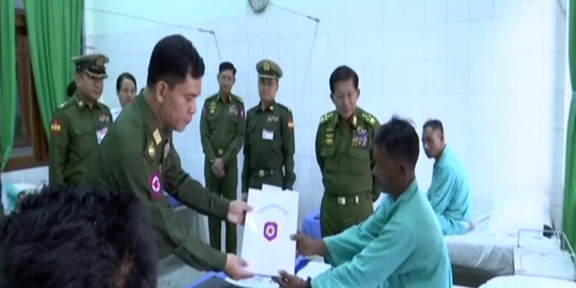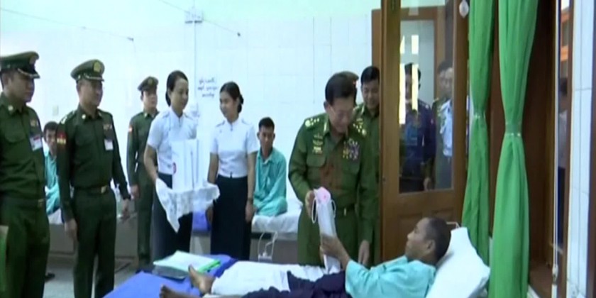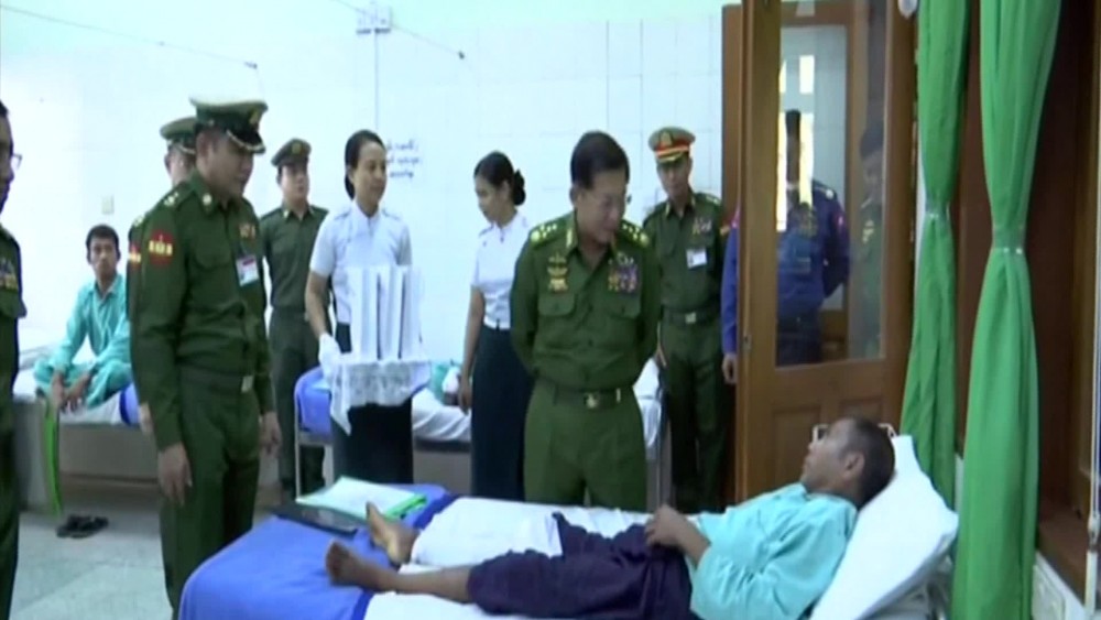 Chairman of the State Administration Council and Commander-in-Chief of Defence Services, Senior General Min Aung Hlaing, along with Chief of Staff (Army, Navy, Air) General Maung Maung Aye, Commander-in-Chief (Navy) Admiral Moe Aung, Commander-in-Chief (Air) General Tun Aung, and senior military officers, visited the 1,000-bed Defence Services Hospital in Nay Pyi Taw on Sunday. The purpose of the visit was to offer support and comfort to military officers and personnel who are undergoing treatment at the Orthopaedic and Trauma Care Unit for injuries sustained during defense and security duties. During the visit, Senior General Min Aung Hlaing personally inquired about the well-being of the patients, provided words of encouragement, and addressed their needs. Additionally, he offered honorary cash and gifts to the patients. Accompanied by General Maung Maung Aye and other senior military officers, they individually spoke to the patients, providing words of encouragement, and presented honorary cash and gifts.