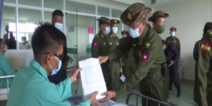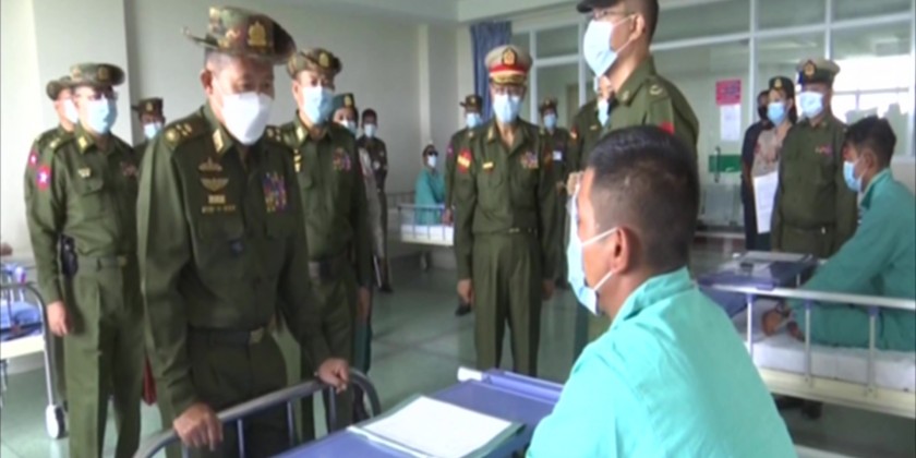 SAC Vice Chairman Deputy Commander-in-Chief of Defence Services Commander-in-Chief (Army) Vice Senior General Soe Win together with senior Tatmadaw officers encouraged officers, other ranks and families who are receiving medical treatment at 1000-bed Defence Services General Hospital in Mingaladon township of Yangon Region on Sunday.