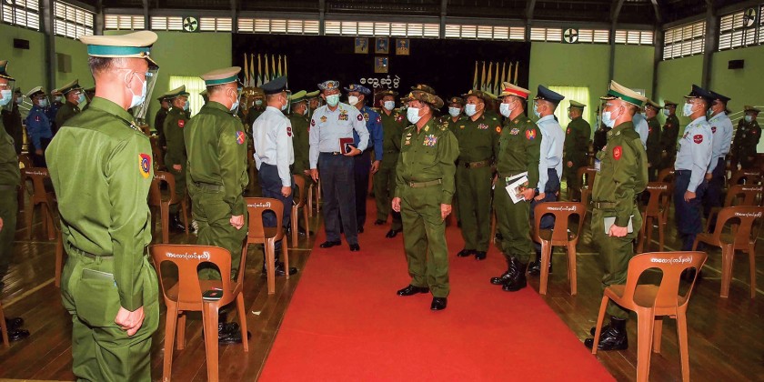 Chairman of the State Administration Council Commander-in-Chief of Defence Services Senior General Min Aung Hlaing met with the senior officer instructors and senior officer trainees of the Command and General Staff College in Kalaw at the hall of Kalaw Station Saturday afternoon.
