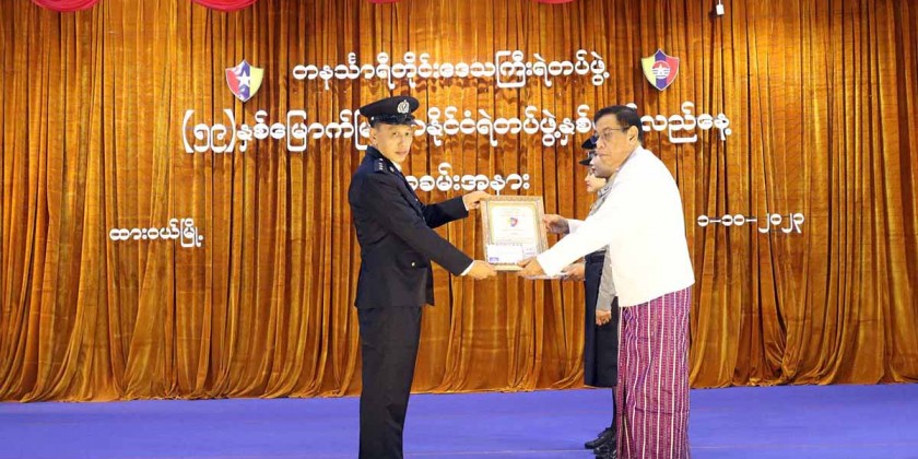 On Sunday, Taninthayi Region Chief Minister U Myat Ko participated in a ceremony to commemorate the 59th anniversary of Myanmar Police Force Day in Dawei.