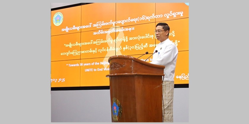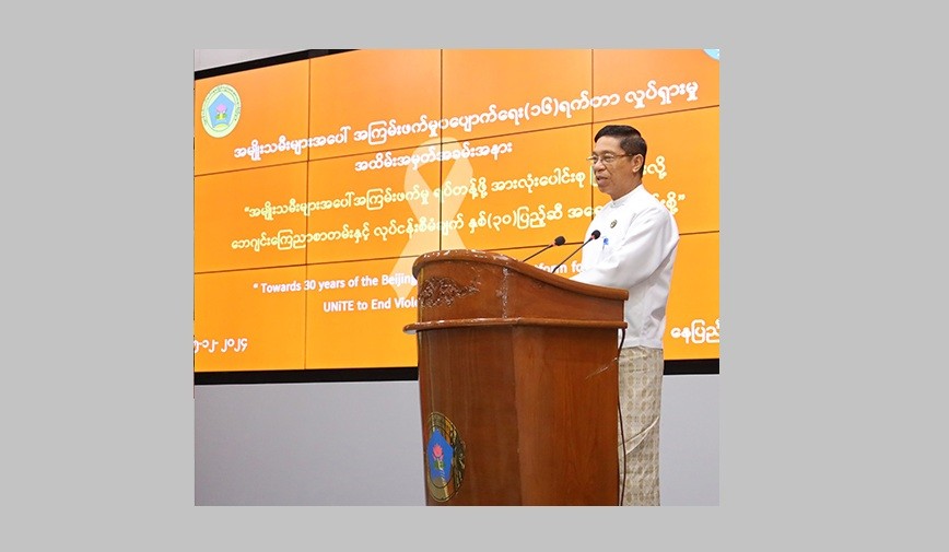 The 2024 theme of the activism is "Towards Beijing +30: UNiTE to End Violence Against Women and Girls." Speaking on the occasion, the Union Minister stressed that Myanmar is implementing the women development and women’s rights promotion activities enacting policies in line with the Unite Nations Sustainable Development Goals and provisions of World Conferences on Women and Convention on the Elimination of All Forms of Discrimination against Women.