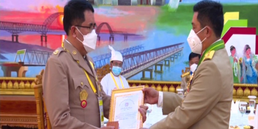 First, Chairman of Armed Forces Day Organizing Committee, Chief of the General Staff (Army, Navy and Air) General Maung Maung Aye gave a speech. Later, the Chief of General Staff presented a certificate of honour to Lt-Gen Myo Zaw Thein who composed the military song entitled, "Good Solider”.