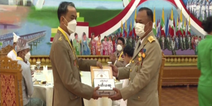 A ceremony to present honorary prizes and certificates of honour to artists who performed in the 77th Armed Forces Day Commemorative drama "From the Northwest to the Clouds” and winners of Tatmadaw songs, poems and story was held at the Bayint Naung villa in Nay Pyi Taw on Sunday morning.