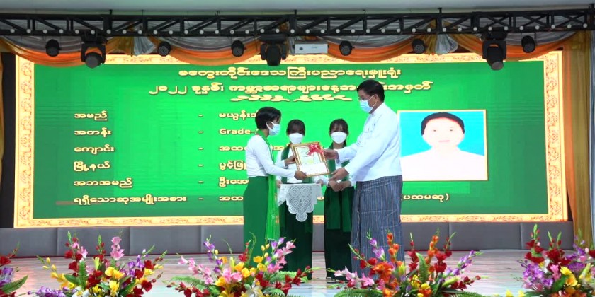 The Region Chief Minister, the regional ministers and officials presented prizes to winners in essay and poem contests and prose writing contest in commemoration of the 2022 World Teachers’ Day. The Chief Minister and party also presented honourary cash to the teachers who entertained with the song, “Myat Saya”.