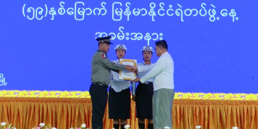 Kachin State Chief Minister U Khet Htein Nan attended the ceremony and delivered a speech, urging police members to be free from bias and to adhere to the code of ethics while providing security measures to society. Head of Kachin State Chief Minister Police Brig Gen KyawTun read out the message of the Chief of Myanmar Police Force, followed by the presentation of honorary certificates and awards to outstanding members.