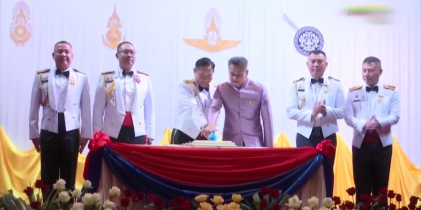 A video clip on commemoration of the Royal Thai Armed Forces Day was shown and the Ambassador, Lt-Gen Thet Pon and the military attaché cut the commemorative cake marking the celebration. Later, the Ambassador and spouse and the military attaché hosted a dinner to those present.