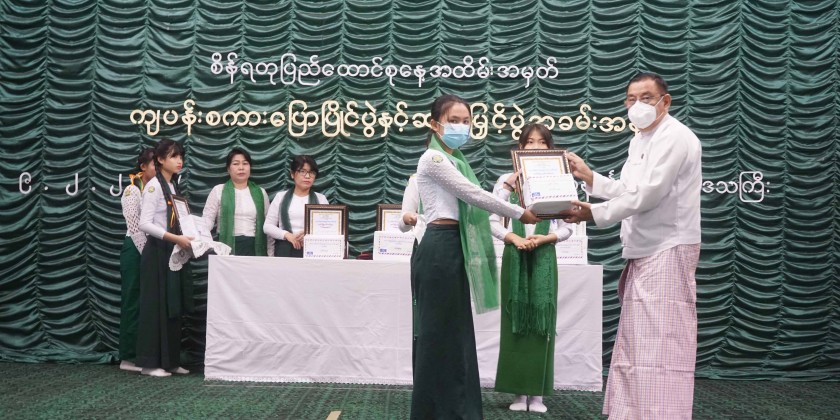 Chief Minister U Myat Ko and officials encouraged the students, competing for the contest. The Chief Minister and officials also presented prizes to the winners of Essay, Impromtu, Poem, Article and Painting Contests.