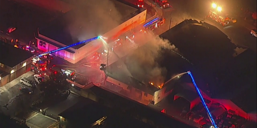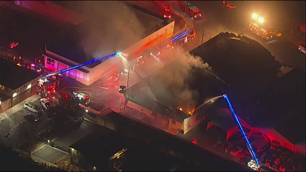 In the San Francisco Bay area, a fire engulfed a commercial building on Thursday and threatened other business in the area.