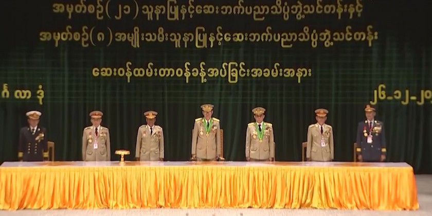 According to the agenda, Lt-Gen Soe Min Oo handed the commissioning letter to each graduate trainee. And, he delivered a speech, and the ceremony ended.