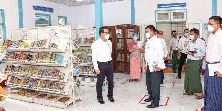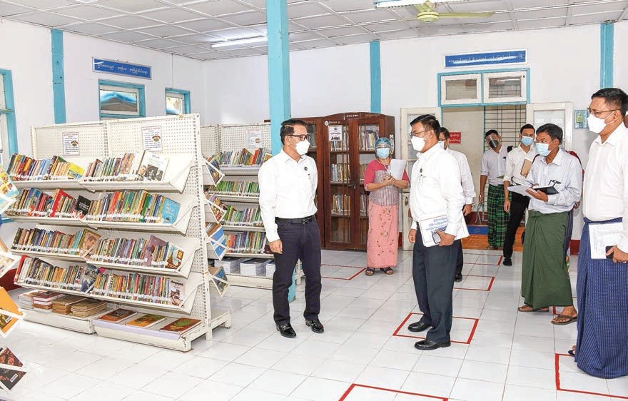 Then, the union minister and party inspected the status of rendering library services, children reading room and mobile library in Pyinmana Township Information and Public Relation Department.