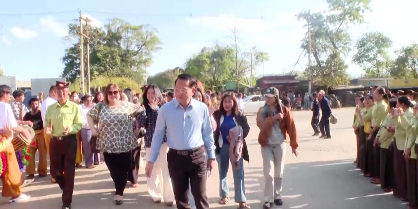 The Union Minister delivered opening remarks and donated Buddha statues, satellite TV equipment, and digital TV set-top boxes for use in the township. Afterwards, artists presented songs and performances, and local residents joined in singing and dancing.