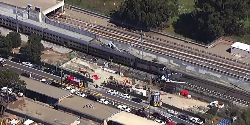 The crash involved a southbound train that departed San Francisco at 10:14 a.m. and soon collided with some on-track equipment just after 10:38 a.m. in the city of San Bruno. The fire has been extinguished and train traffic has been halted in the area.