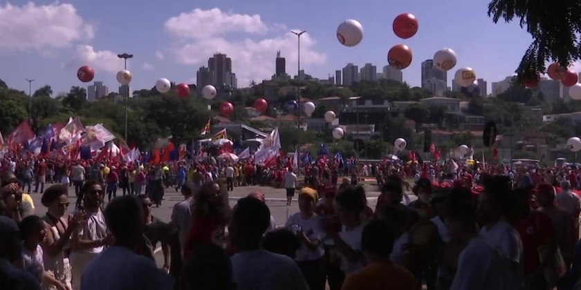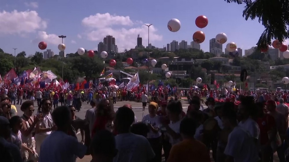 During the gathering in Brazil's most populous city, leftists called for a massive voter turn-out by progressives in upcoming elections later this year as a repudiation of conservative candidate President Jair Bolsonaro.