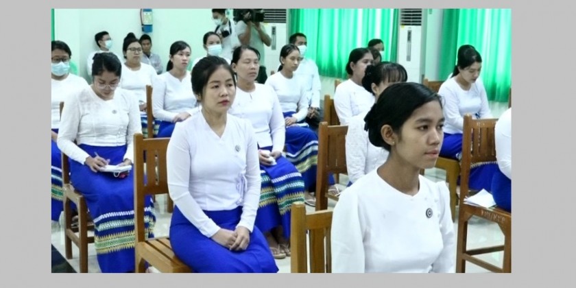 Next, the Union Minister, Deputy Minister and officials viewed the giving training on basic computer skills. The training will take place for ten days from 14th to 25th of August and 40 trainees attend the training.