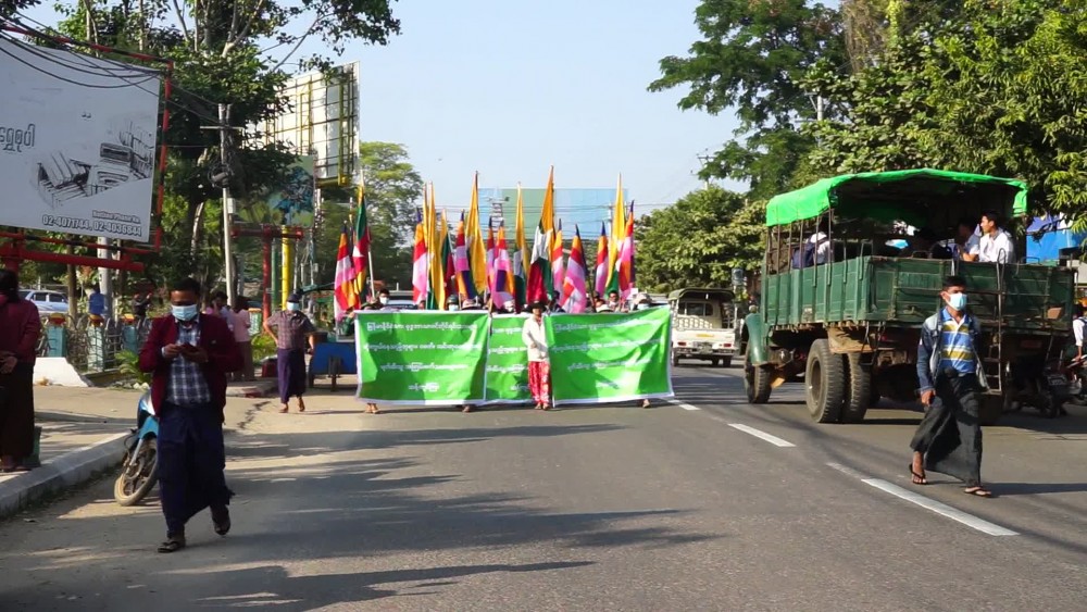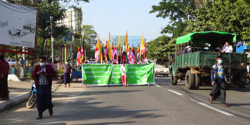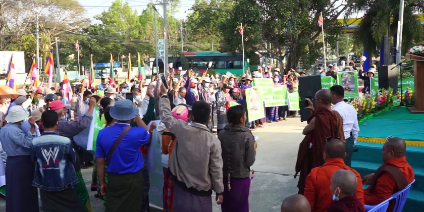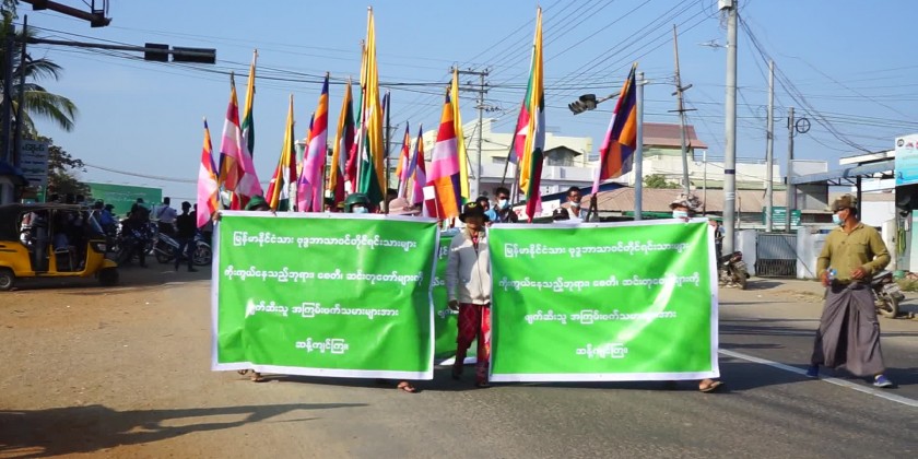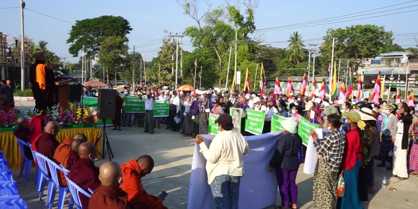 Mass rally condemning the act of terrorist insurgents who insulted and destroyed the Buddhist Pagodas and Cetis and religious buildings was held at Minbu Township, Magway Region at 3 PM on 17th January.