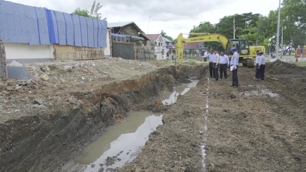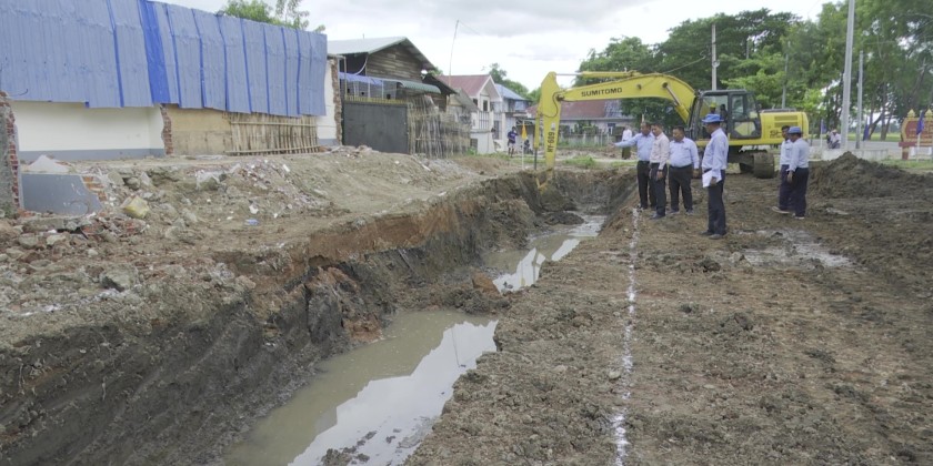 The Ma Paik Kal Yoe drainage canal, with a catchment area of 1.67 square miles, normally flows into the Paunglaung River. However, due to severe rainfall, flooding has occurred. Therefore, a new drainage canal is being excavated on the eastern side of the old Yangon-Mandalay Road. The earthwork for this drainage project, spanning 3,890 feet in length and involving 3,452 cubic yards of earth, is expected to be completed during the rainy season.