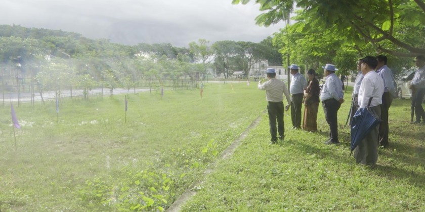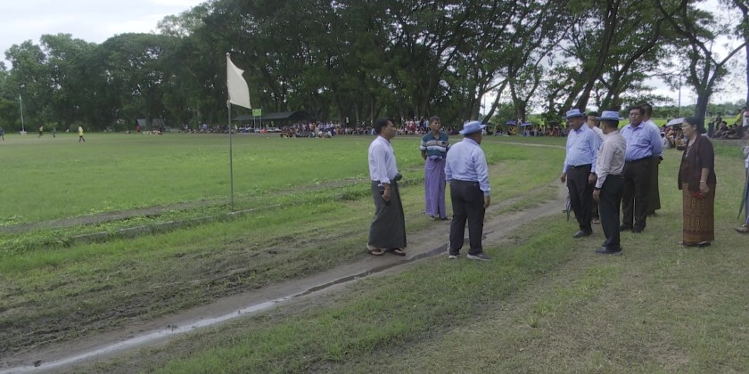 After that, the Union Minister and accompanying officials inspected the construction of spectator stands and road development projects for the upgrade of the Agricultural University football field within the Yezin University campus area. They also coordinated and facilitated necessary arrangements for these projects.