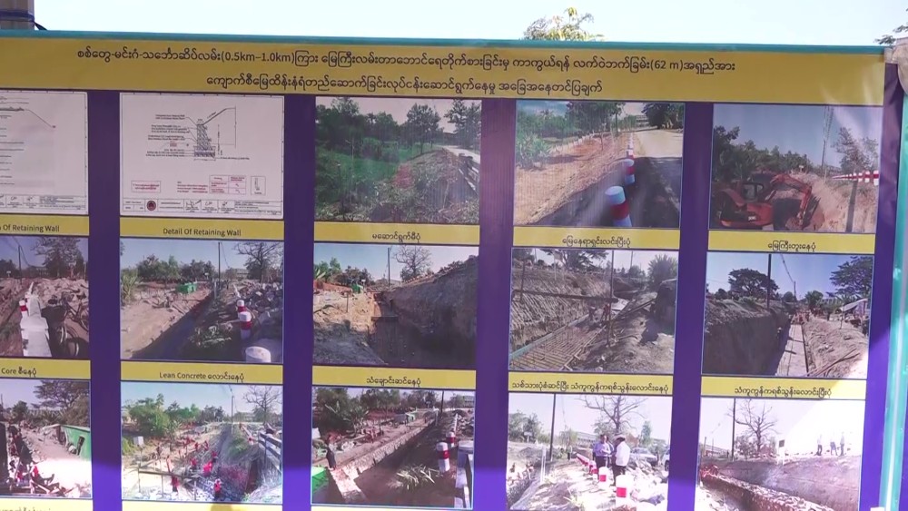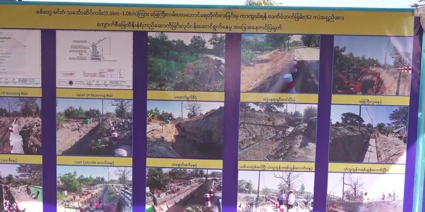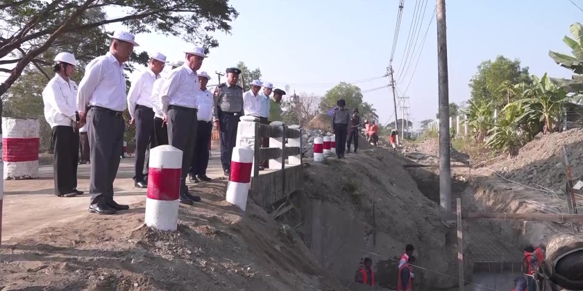 Furthermore, they inspected the construction of drainage channels, sectional concrete paving, and earthen embankment work along the Sittwe-Palin Pyin road section. After hearing explanations from responsible officials regarding the project implementations, the Chief Minister provided guidance and coordinated necessary measures with the officials, it’s reported.