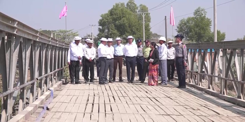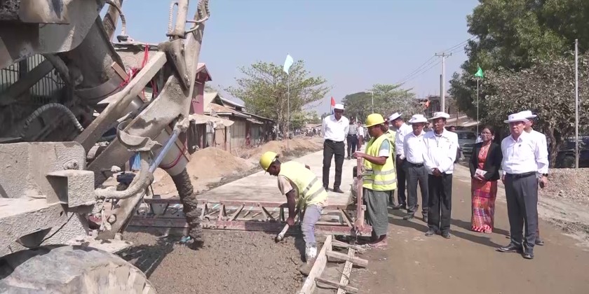 They also inspected the completed concrete road paving in Maung Ni Pyin village tract, the ongoing asphalt road repair work on the Kyaukhaung-Yaychanpyin road section, and the concrete paving and gravel road construction in Thakke Pyin village, Sittwe Township.