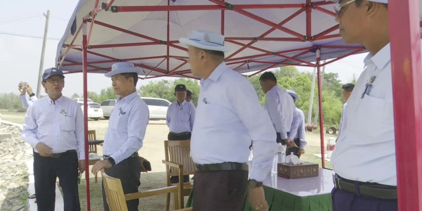 While necessary repairs are ongoing, temporary low-lift pumps have been deployed since the morning of April 21 to divert water into the Left Main Canal, ensuring timely irrigation and preventing crop damage. Union Minister U Min Naung and Deputy Minister U Bo Bo Kyaw conducted an on-site inspection, directing officials to accelerate water distribution to all designated cultivation areas, to reinforce the temporary earthen embankment for stability, and to coordinate closely with relevant departments and farmers to safeguard crops from further damage.