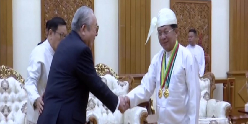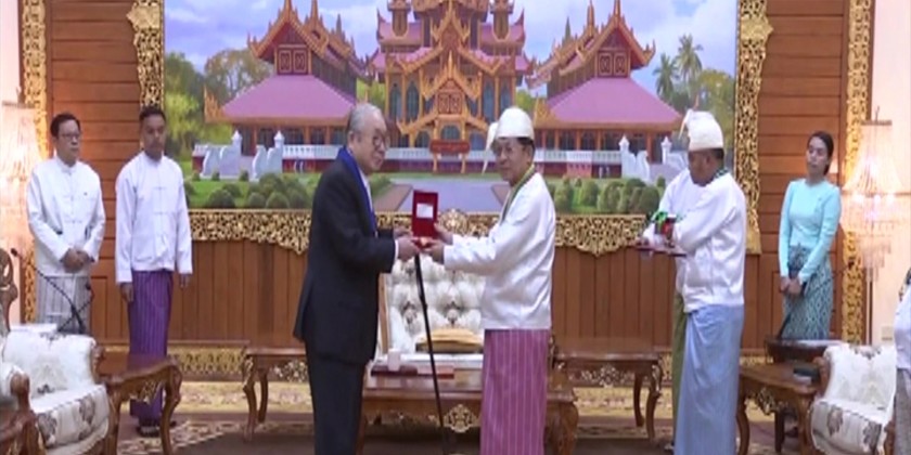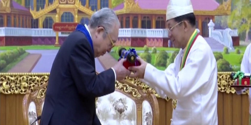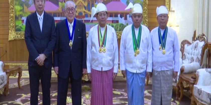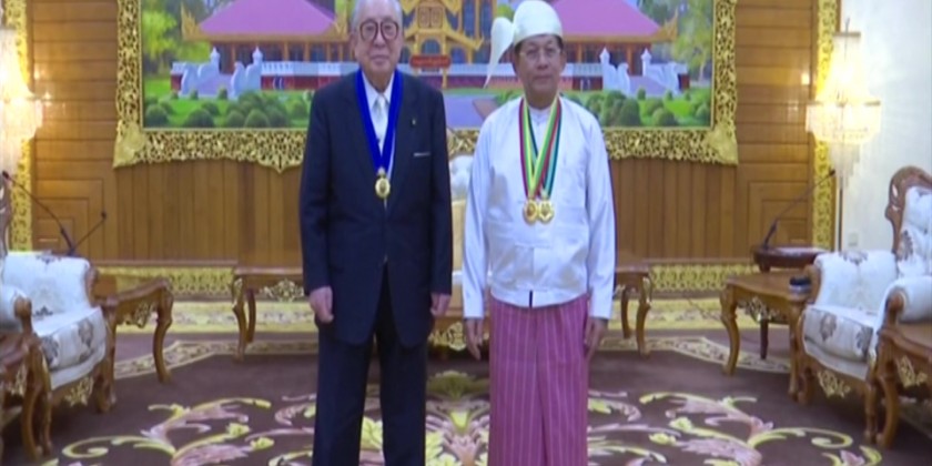 First, the Deputy Prime Minister Union Minister for Home Affairs Lt-Gen ThiriPyan Chi Sithu Soe Htut read out the orders conferred the title. Later, the Prime Minister Senior General Min Aung Hlaing presented ThiriPyan Chi title and insignia to the Chairman of Japan-Myanmar Association due to his exceptional cooperation for the development of the state, peace and prosperity.