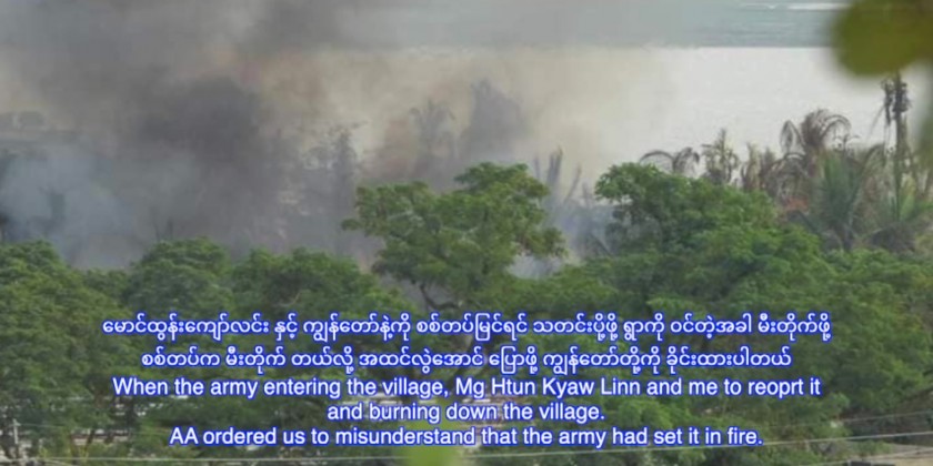 To disrupt the peace and regional stability, AA armed insurgents have been intentionally launching attacks in Pauktaw Township and surrounding areas, committing destructive activities such as destroying and setting fire to people’s houses, departmental buildings and shops.