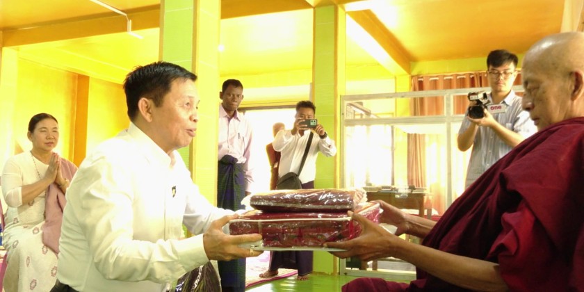 In the afternoon, the Union Minister visited the Sattyon DhammaYeiktha  Monastery in Kyonmange  Town, where he paid respects to the presiding Sayadaw, the State Ovadacariya, Bhaddanta Sumana and offered robes and donated items and supplicated matters related to religious affairs, it was reported.