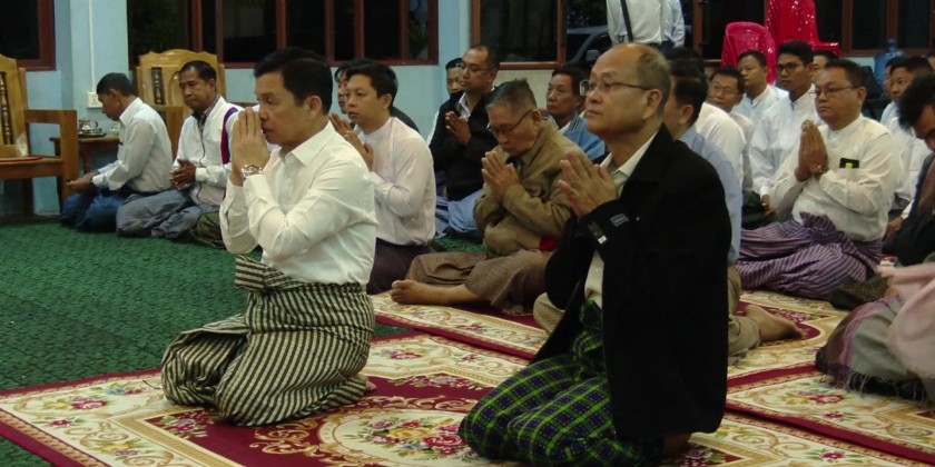 The Union Minister and attendees observed the Five Precepts from the presiding Sayadaw of Kungyankone  Monastery, listened to the recitation of Paritta by the members of Sangah, and made offerings of robes and donated items to the Sayadaws.