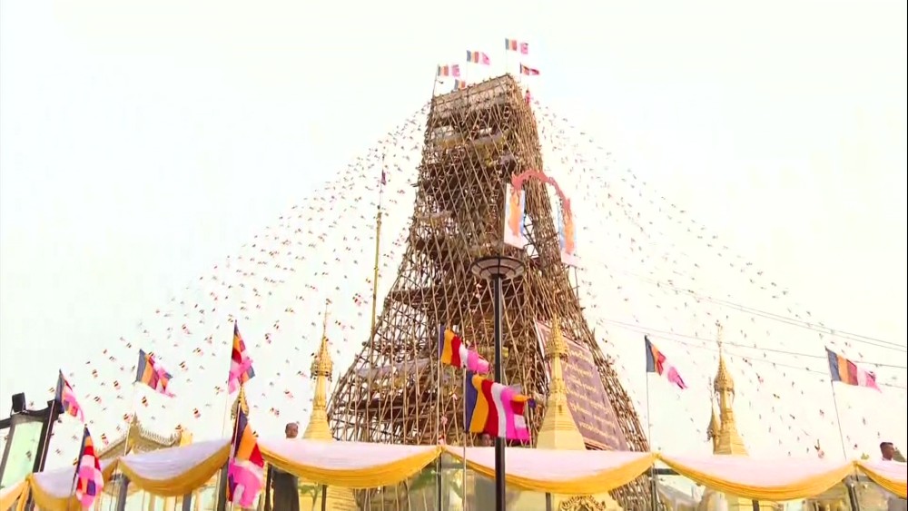 A ceremony to hoist Diamond bud, Vane and Golden umbrella atop Shwe Bone Pwint Pagoda in Shan State (South) was held on 11th April in conjunction with the consecration ceremony.