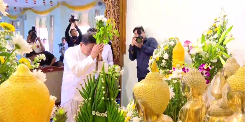 Then, the Prime Minister and party paid homage to the pagoda and Buddha images and offered flowers, water and oil lamps. The consecration ceremony then followed, and day meals were donated to the Sayadaws and members of Sangha.