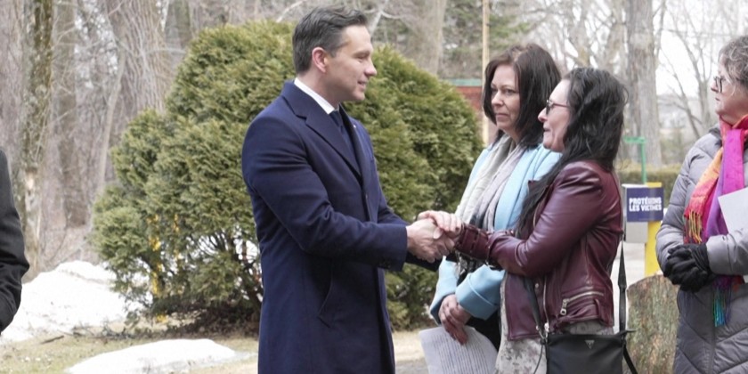 On February 15, he addressed supporters at a "Canada First" rally in Ottawa, encouraging attendees to wear red and white to commemorate the 60th anniversary of the Canadian flag. In late March, Poilievre visited Vancouver Island, where he held a press conference in Nanaimo.
