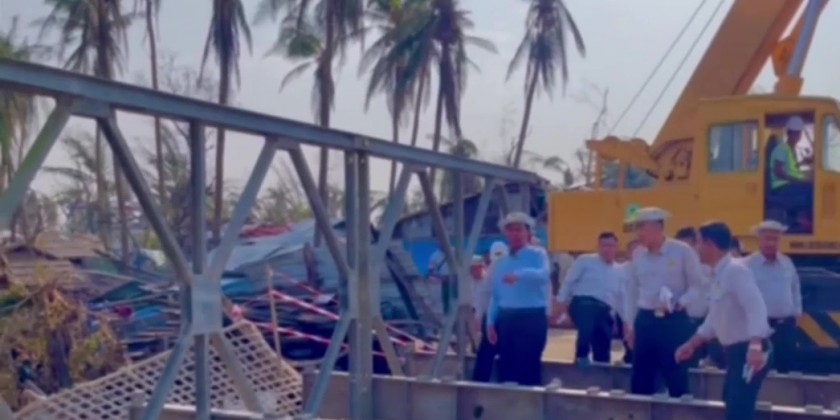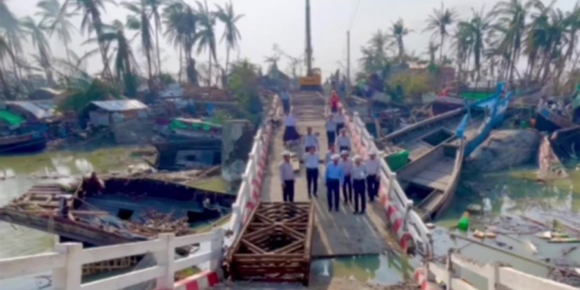The concerned officials reported on cooperation and the Union Minister coordinated the cooperation. On the same day, the Union Minister inspected construction of a bailey bridge in the place of the damaged ThaeChaung Bridge on the Sittway-Patlinpyin Road and gave necessary instructions.
