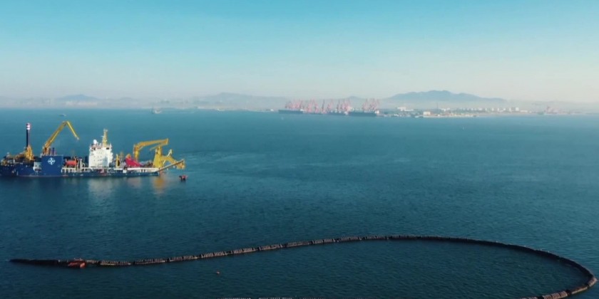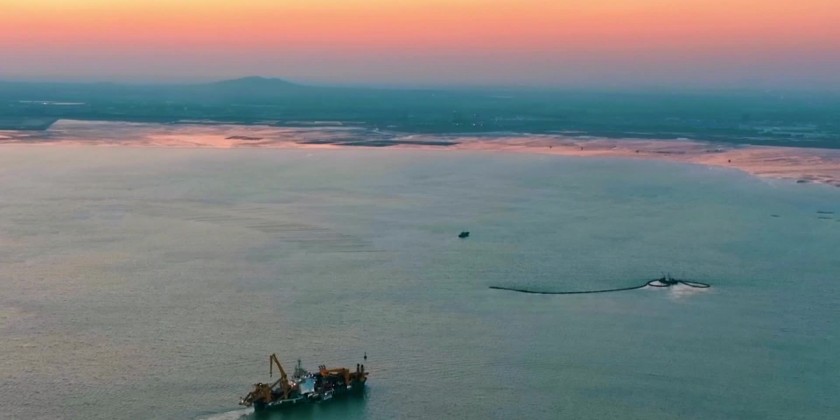 The project will overcome difficulties like remote transport and tight schedule, and build a 3,135-meter-long 100,000-ton channel, an extension project of Lianyungang Port. The project will dredge 6,766,000 cubic meters of sand and silt in total.