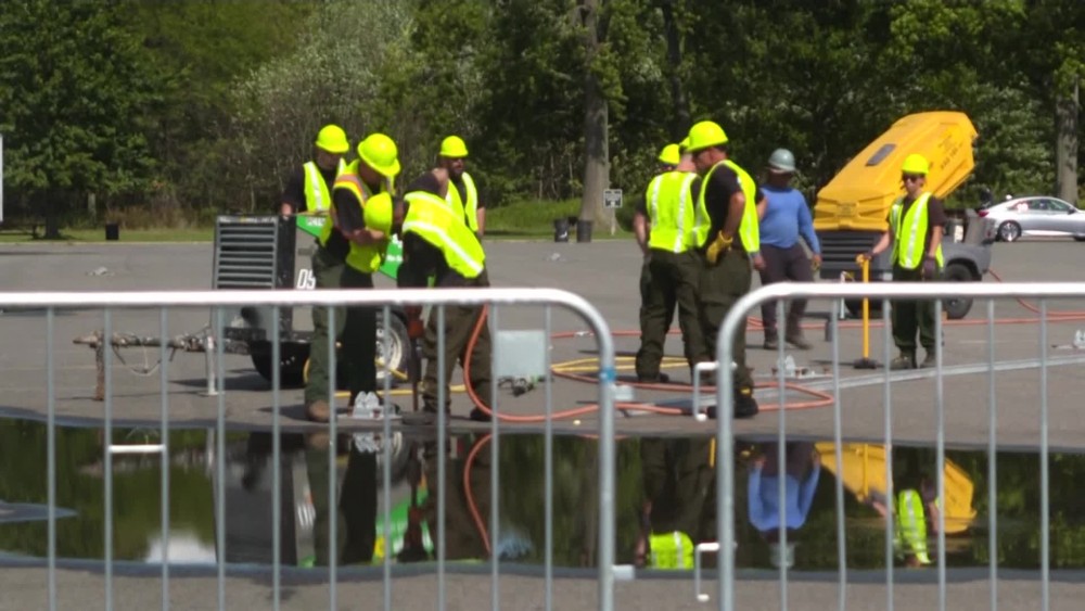 Construction started Monday in a far-flung parking lot in the northern Bronx where New York City officials are planning to erect hangar-sized tents as temporary shelter for thousands of international migrants who have been bused into the city as part of a campaign by Republican governors to disrupt federal border policies.
