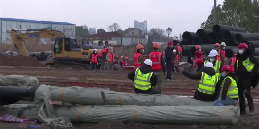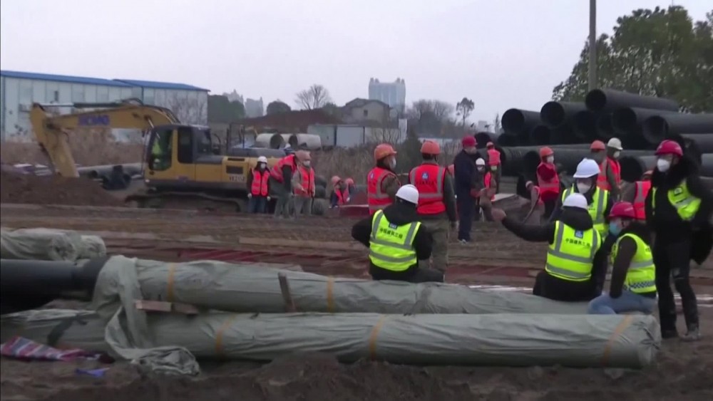 Land-leveling work is still underway since the construction started on early Friday morning. The hospital will be put into use by Feb. 3. The hospital will follow the building model of the Hospital in Beijing to use movable plank houses so that the construction will be completed quickly. In the treatment and control of SARS, or Severe Acute Respiratory Syndrome, that spread rapidly on the Chinese mainland in 2003, Beijing built that Hospital. The Hospital was built in seven days. The hospital admitted one-seventh of the SARS patients in the country within two months, creating a miracle in the history of medicine.