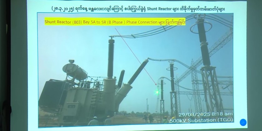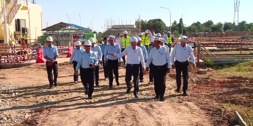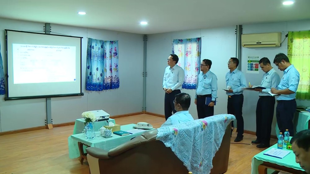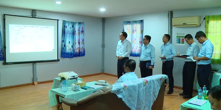 First, the Director-General and responsible officials of the Electricity Transmission and System Control Department briefed the Union Minister and officials at the project's temporary office on the project details of the 500 kV Kangaung (Meiktila) Substation and the 500 kV Sapakye (Taungoo) Substation, the progress of the substation construction works, the current completion status of the works, and the future project implementation plans.