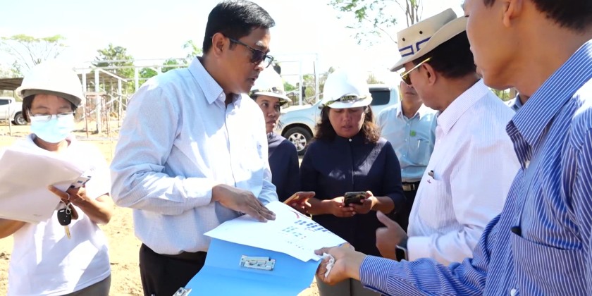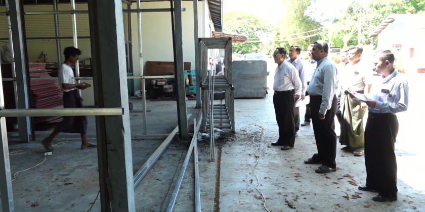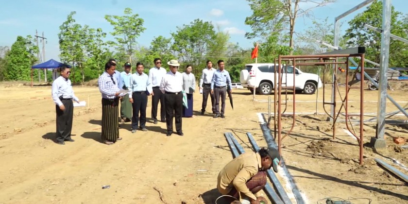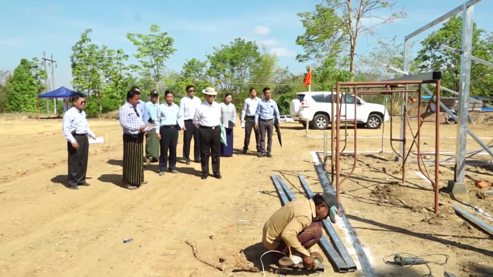 Union Minister for Cooperatives and Rural Development U Hla Moe, accompanied by officials, inspected ongoing preparations for temporary housing to accommodate earthquake-affected civil servants and their families on ministry-owned land in the morning of April 15.