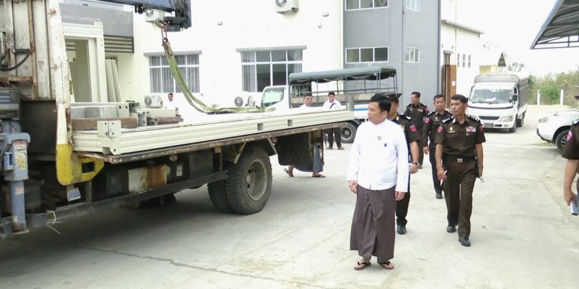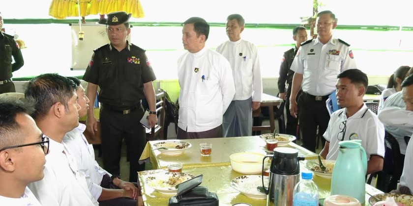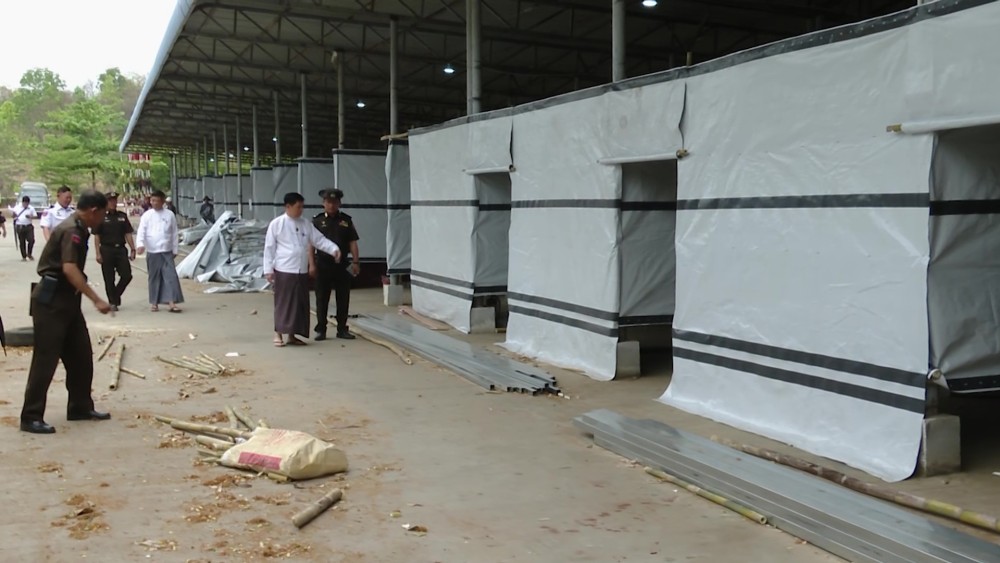 The Union Minister for Immigration and Population, U Myint Kyaing, visited the Ministry's office complex in Naypyitaw on April 7. He inspected the temporary housing arrangements being set up for staff members who were affected by the earthquake, specifically in the lawn area and parking lot in front of the ministry. After observing the situation and progress, the responsible personnel provided detailed reports on the completed work.